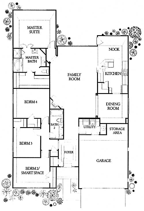 Open plan, large single living area, two dining areas. The master bedroom has a separate oversized garden tub and shower, the second bath has two sinks. Lovely fireplace with mantel. This plan has the option to delete a bedroom and make it into a study or a large office.