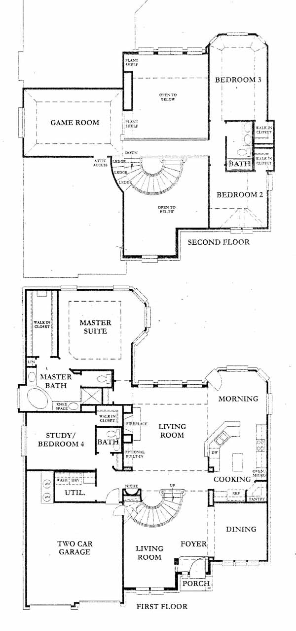 This home is as impressive inside as it is outside. The foyer flanked by the living and dining room takes you into the 2nd living room with fireplace and optional built-in media center. Open to the living room is the kitchen with pantry, island and morning area. From the living room you can access the 4th bedroom/study with bath and the massive master suite and bath with dual vanities and walk-in closet. Upstairs you have the 2nd and 3rd bedrooms with walk-in closets, hall bath and a game room.