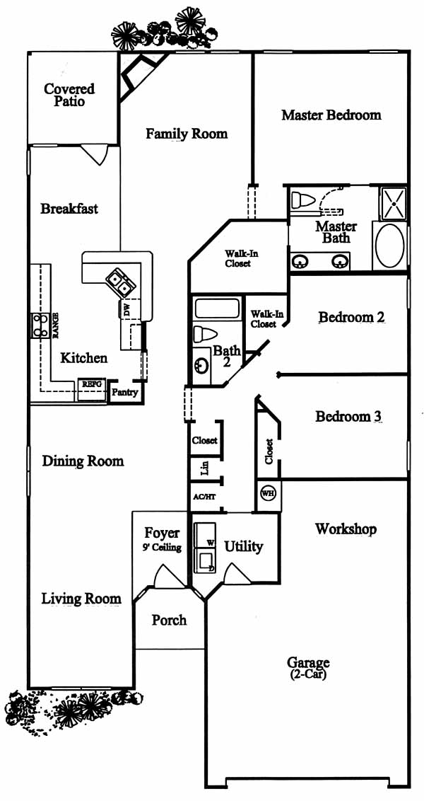 Great open floorplan in this beautiful single story home with master bedroom with walk-in closet that has built-in shelving.