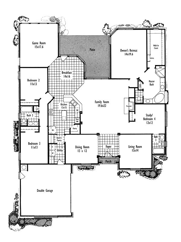 Single story home with four bedrooms, three baths and two living areas. Split bedrooms with master suite opening to patio and backyard.
