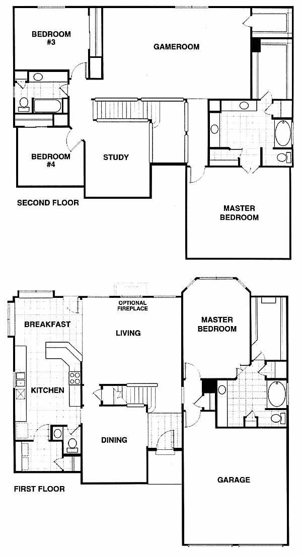 The Summerhills spacious floor plan features a large kitchen with breakfast area and two master bedrooms.