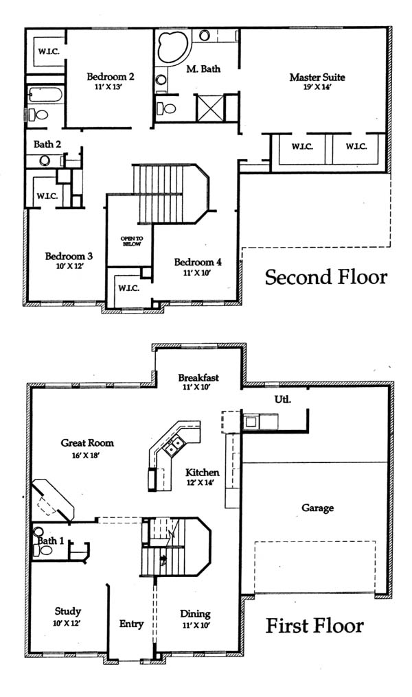 A four bedroom two and one half bath home with the master suite and three bedrooms upstairs and a private study, formal dining room and great room, kitchen and breakfast area down.