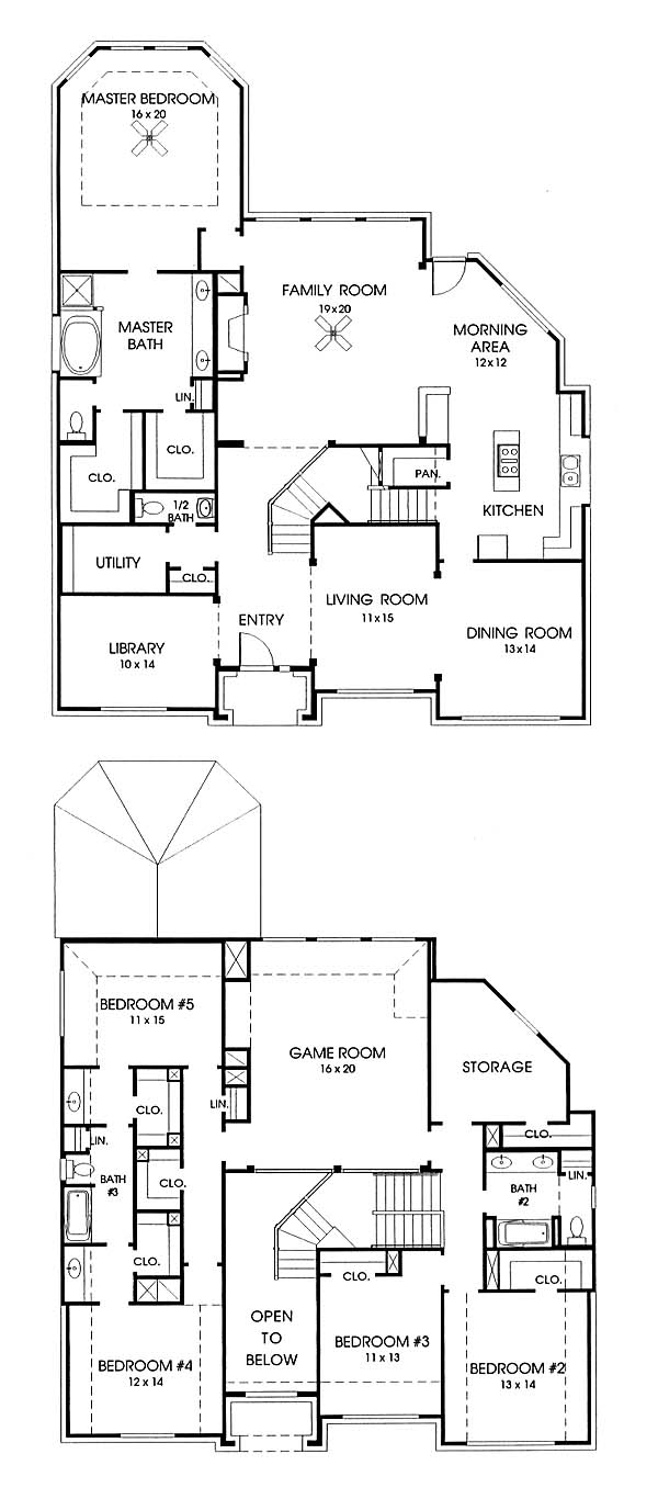 The community includes 1,200 acres of heavily forested land and upon completion will contain more than 2,400 single family homes. The master plan also contains commercial and multi-family residential sites, open areas, green space and parks. Residents will be offered a variety of amenities, including a community center, sports fields, nature park, trail system, swimming pools and more. Master bedroom with dual vanities in master bath. His and hers walk-in closet. Family room opens into kitchen with morning area. Dining/living room combo off entry. Library down. Secondary bedrooms, game room and storage up. Options include replacing library with sixth bedroom with full bath nearby.