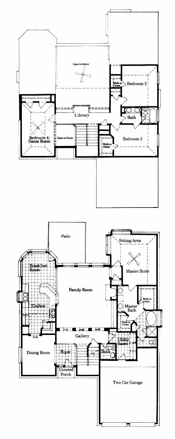 This beautiful two-story home features a main level Master Suite with sitting area, Master bath with 2 walk-in closets, very large family room, kitchen and breakfast room overlooking the patio. Main level utility room and dining room. Upstairs you will find two additional bedrooms both with walk-in closets, a game room or optional 4th bedroom, and a library that is open to the family room below. There is also an option for a 3rd full bath.