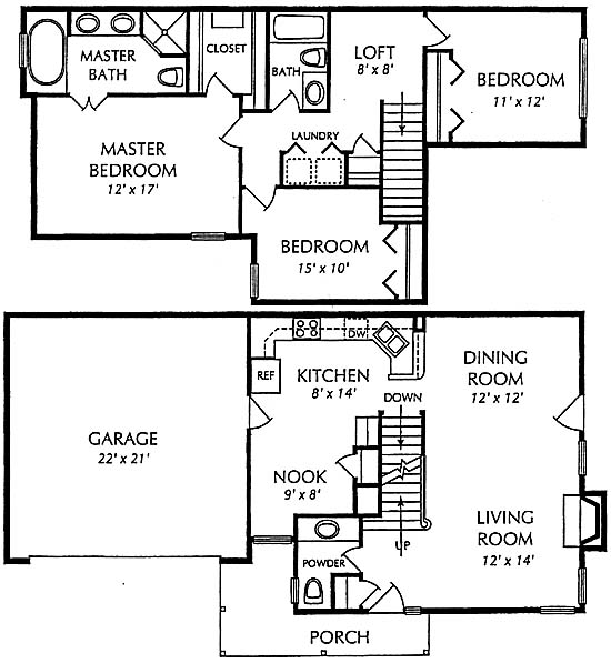 The Manchester features a very open main floor with kitchen, dining, living room and small bathroom. Upstairs, you enjoy a large master suite with walk-in closet, two bedrooms, a loft and two large bathrooms. The two car garage is conveniently adjacent to the kitchen.