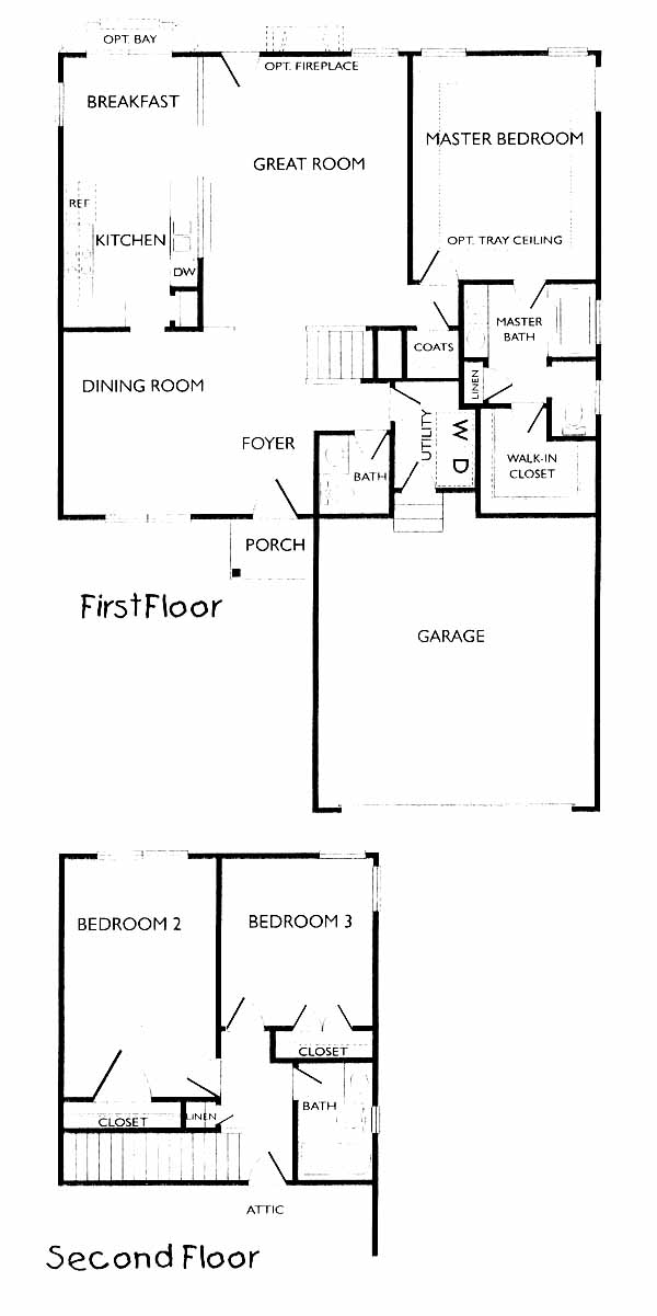 First floor master bedroom and bath, great room and formal dining area. All other bedrooms are on the second floor. Crawl space foundation, metal insulated windows, oak factory cabinets, white on white appliances, painted woodwork, carpet and vinyl flooring, maintenance free exterior.