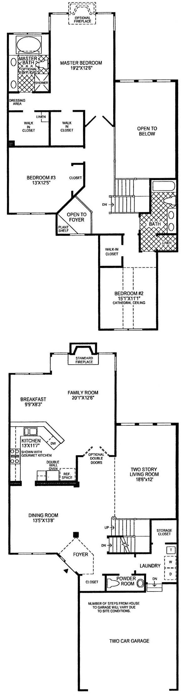 The Victoria opens onto a spacious foyer with handsome architectural columns that set off the dining room. An elegant living rooms soars two stories and opens onto a balcony walkway above. The dining room adjoins the living room for ease of entertaining. A spacious family room with elegant fireplace, a breakfast nook and open kitchen, powder room and laundry room complete the first floor. Upstairs, double doors open into a sumptuous master suite with his and her walk-in closets. Two oversized bedrooms, one with direct bathroom access offers plenty of space for guests. Lavish master baths with Jacuzzi brand soaking tubs, Corian or granite counter tops in the kitchen and main floor street entrance.