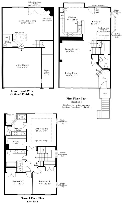 The lower level comes with a finished recreation room and fireplace. Other options available include den, half or full bath and the extension.