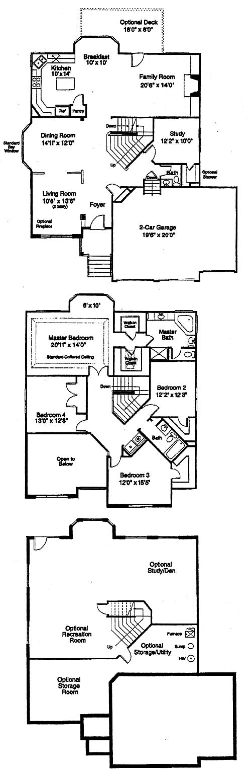 Two-story colonial home with basement. The standard floor plan includes a kitchen with breakfast area, cooktop island, pantry, desk, formal dining room, two-story living room/parlor, family room, library, laundry and a powder room on the first level. The second floor has a large master bedroom with sitting room, walk-in closet, master bath with separate soaking tub, shower and double sinks. Laundry room. Bright open and airy, the deisgns of the Malibu offer unique architectural detailing and interior touches that reflect the homes California heritage.