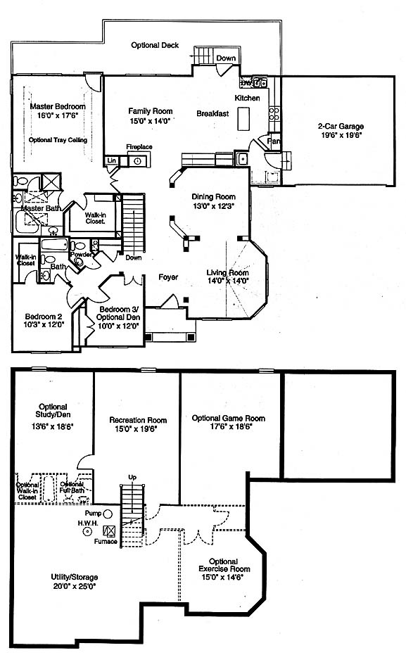 Rambler with basement. The standard floor plan includes a kitchen with breakfast area, island, pantry, formal dining room, living room/parlor, family room with fireplace, large master bedroom with walk-in closet, master bath with separate soaking tub, shower and double sinks. Lower level is finished with a bedroom, bath great room and an office. Designed in the tradition of tropical villas and southern California bungalows, the Newport give homebuyers single-story living with bright, open interior spaces.