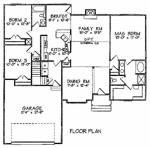 This one level home is just perfect! A large master bedroom is separated from three additional bedrooms by the centrally located family room and eat-in kitchen.
