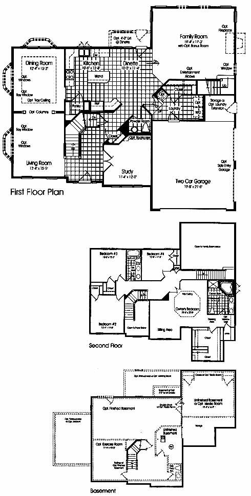 This wonderful open floor plan features nine foot ceilings, an open foyer, four large bedrooms and a luxury master bath and sitting room. You can choose optional bay windows and a finished basement to add even more space.