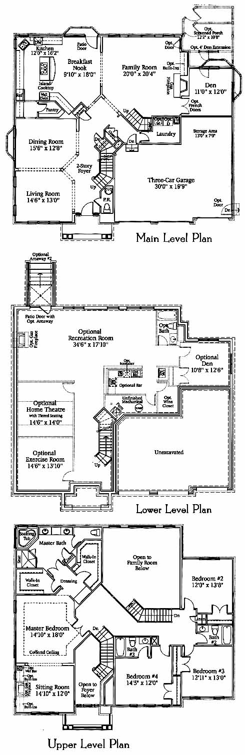 A recessed entry leads to a two-story foyer. Den on the main level. The upper levels features a family room and foyer overlooks master suite with coffered ceiling. Sitting room. His and Hers walk-in closets and a superbath with corner soaking tub.