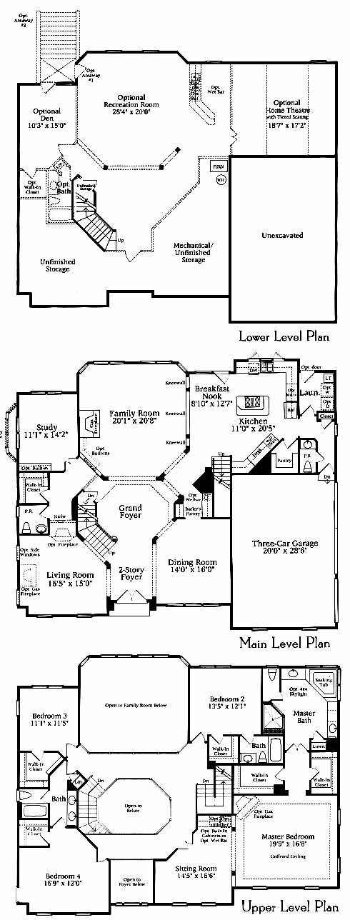 A recessed entry leads to a two-story grand foyer with a circular staircase and a family room with a gas fireplace. Kitchen includes a butlers pantry. Library. Standard three car garage. Master suite with coffered ceiling, sitting room, his and hers walk-in closets with a large master bath.