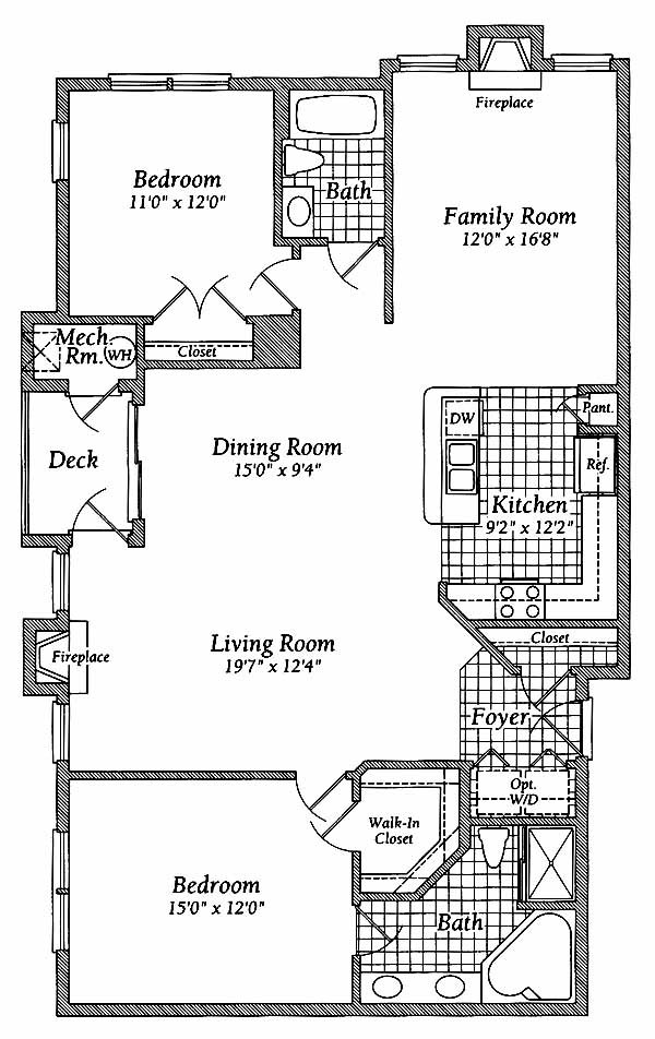 This model offers a family room in addition to the living room and dining room. Two gas fireplaces are included as is a soaking tub in the master bath. A loft option is available which provides an additional bedroom and bath.