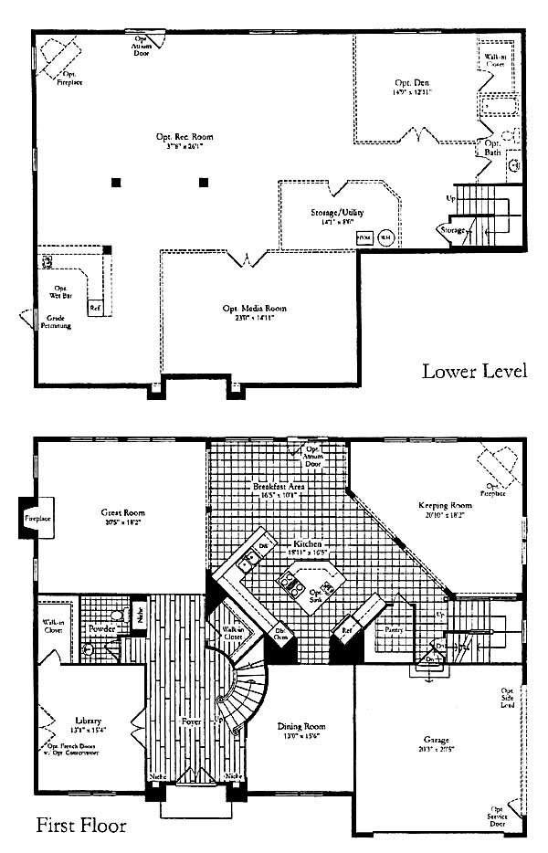 This home features an elegant foyer with a curved staircase. It is a very open design with an exceptionally large kitchen. For convenience there is a rear staircase and laundry on the bedroom level. Columns decorate the master bedroom sitting room, and the master bath is gorgeous. This home can be configured with an optional fifth bedroom and or an optional three car garage. An optional guest suite is also available.