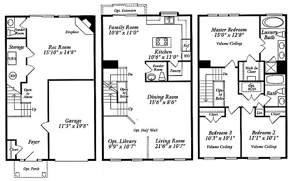 Three level town home with a walk-out lower level with one car garage, recreation room with fireplace and storage. The main level includes a kitchen with cook top island, pantry and attached family room, separate dining room, living room, optional library, and a powder room. The upper level includes the master suite with walk-in closet, separate soaking tub, shower, and double sinks. The other two bedrooms, and a hall bath. Laundry option available for the upper level. Small enclave of luxury brick fronted town homes surrounded by mature landscaping.