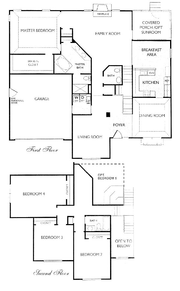 Glorious 2 story foyer and pass through stairs leading to 3 to 4 bedrooms. The master bedroom is conveniently located on the 1st floor. Unique master bath, with tray ceiling in the master bedroom and dining room. Huge kitchen with breakfast area leads out to the covered porch or optional sunroom. Optional 5th bedroom as well. It's amazing how much house you get for the cost!!!