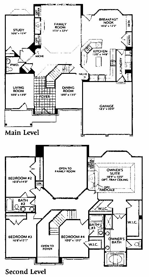 This home features spacious living areas with natural light, vaulted ceilings, hardwood foyers and gas fireplaces in the family room, kitchen is inviting with a center island. The luxurious owner's suites have ceramic tile and soaking tubs. Master bedroom offers sitting area off the main bedroom level. Three additional bedrooms are comfortable in size with a buddy bath.