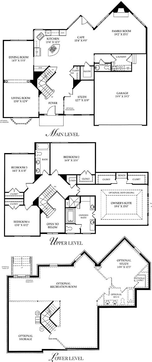 A light flooded foyer adds ambience to this wonderful floorplan. The large kitchen with an eat-in cafe and attached family room offers lots of living and entertaining space. Four large bedrooms and a huge lower level with an optional recreation room and study complete this home.