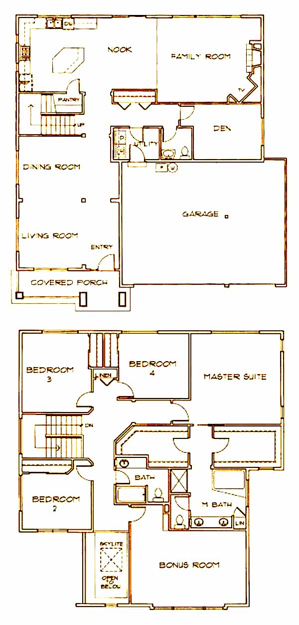 The covered porch leads you into the living and dining room area of this lovely home. As you continue through the home you'll pass the powder room and den just before you come to the kitchen with island, wrap around counter and pantry. The kitchen is then open to the family room with fireplace. Upstairs you have the 2nd, 3rd and 4th bedrooms, hall bath, large bonus room and the master suite and bath with walk-in closet and dual vanities.